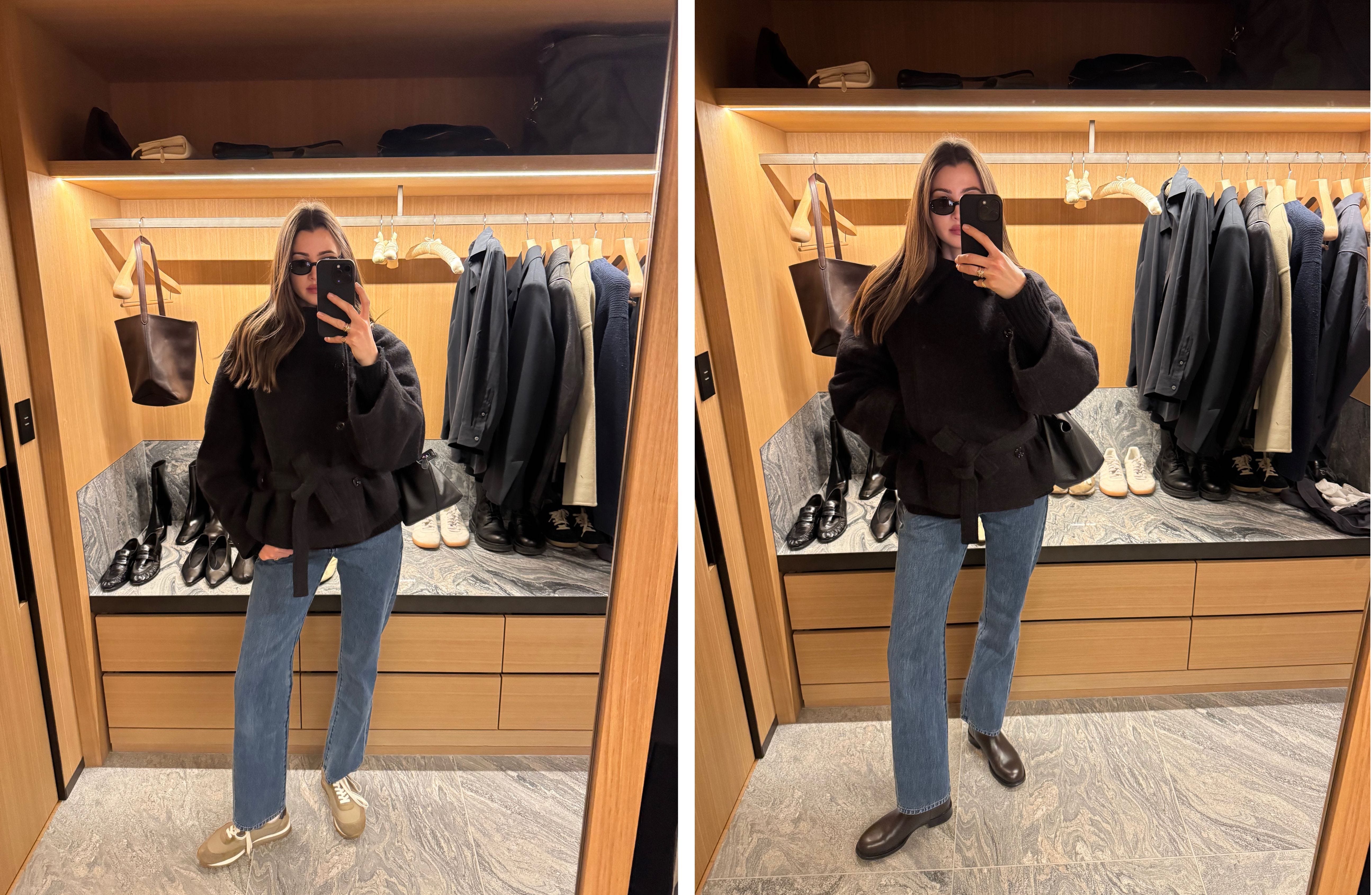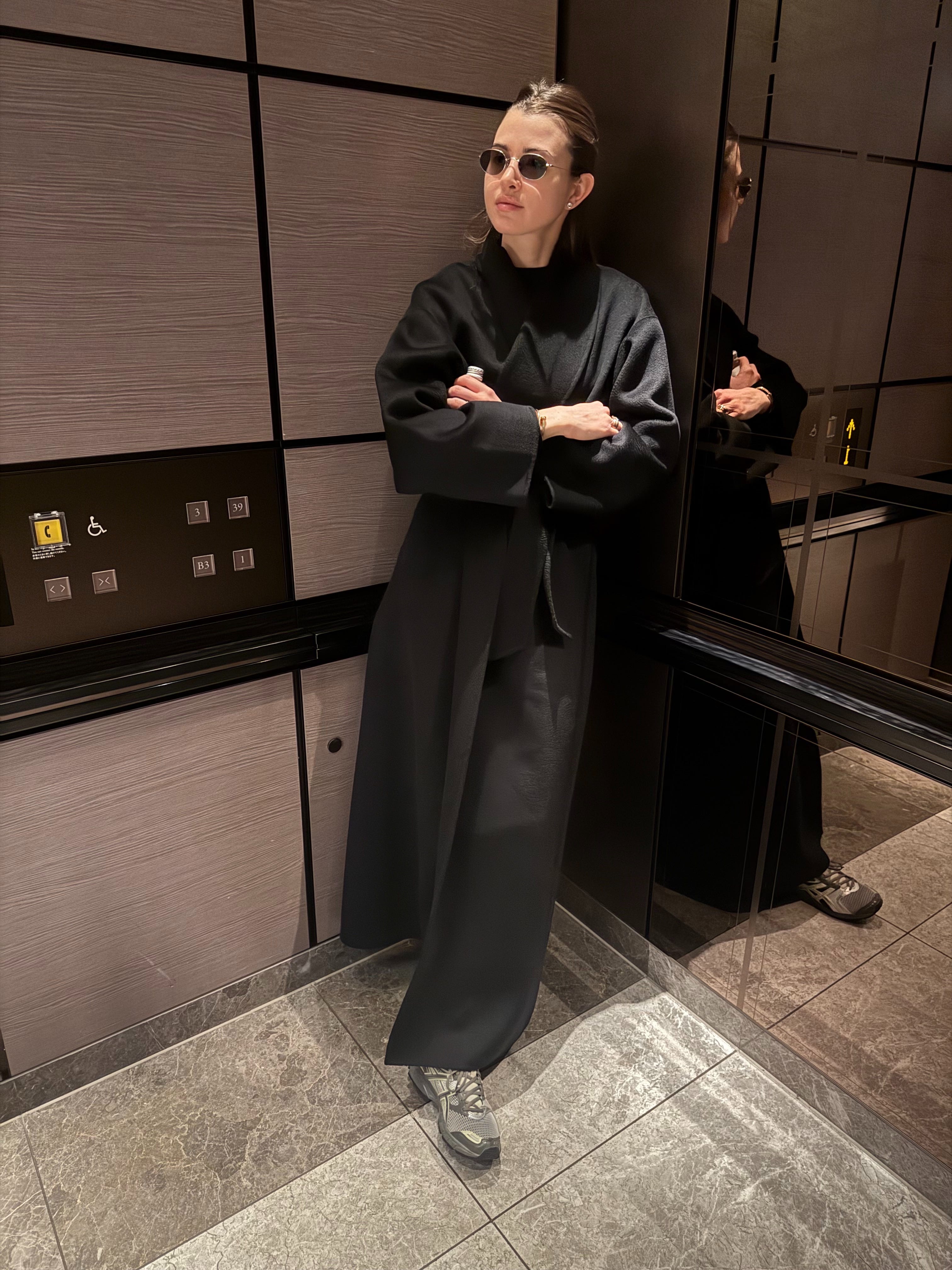 This coat from Tove was perfect for end of trip, when you’re over everything in your suitcase or running out of clean options (or both)—it makes me feel put together no matter what and completely hides whatever’s underneath. I wear it often at home over leggings and sweatpants for the same reason.