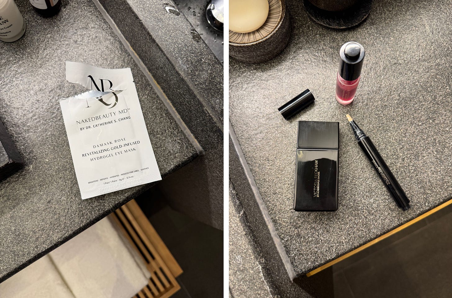 Other most used items: NakedBeauty MD Eye Masks to perk me up before dinner, and the ultimate complexion trio—Victoria Beckham Beauty Foundation Drops, Concealer Pen, and Blush Tint.