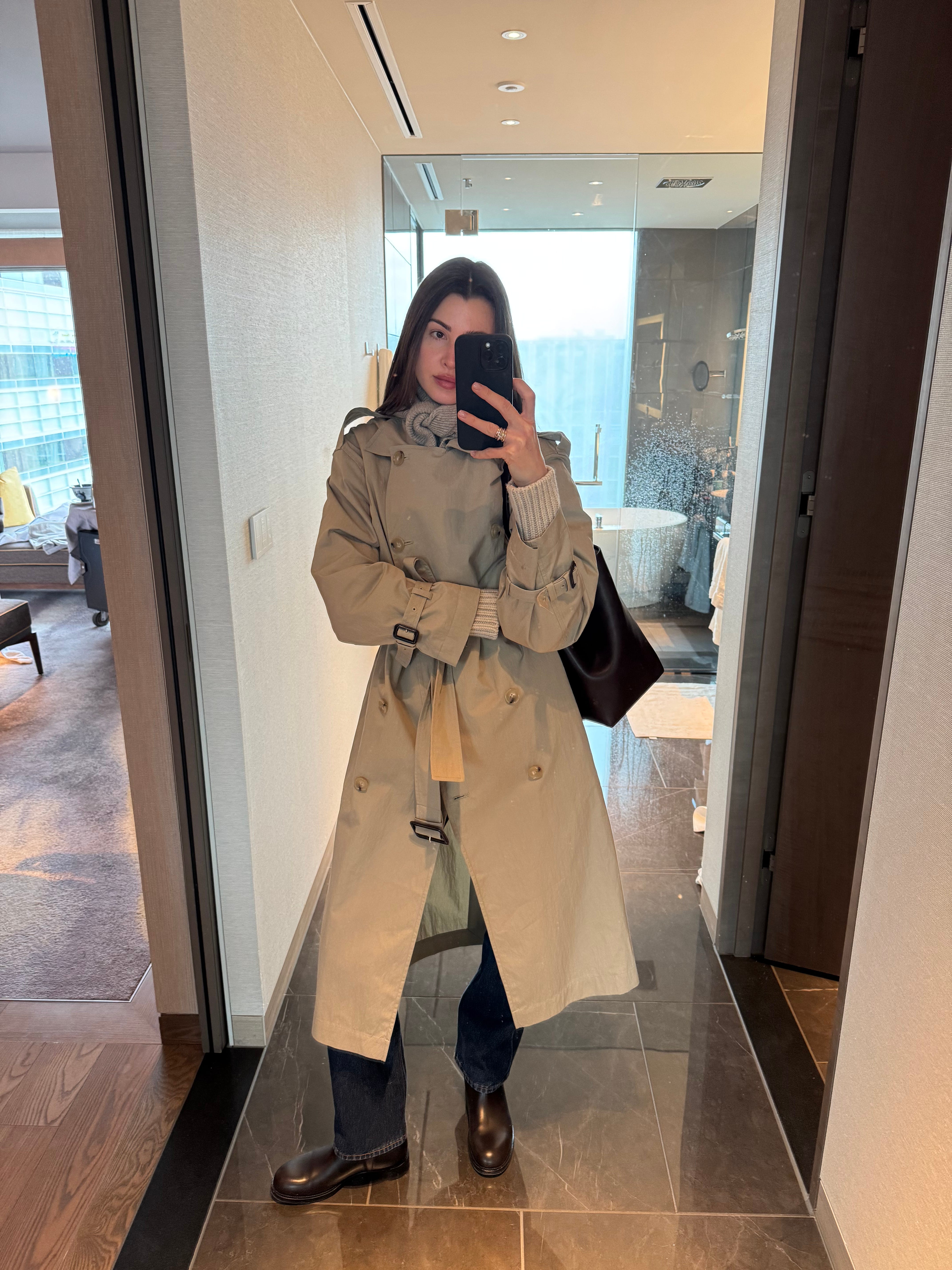 Our first full day. It was rainy, and we’d planned to explore by foot, so I chose a trench and boots to stay as practical as possible.