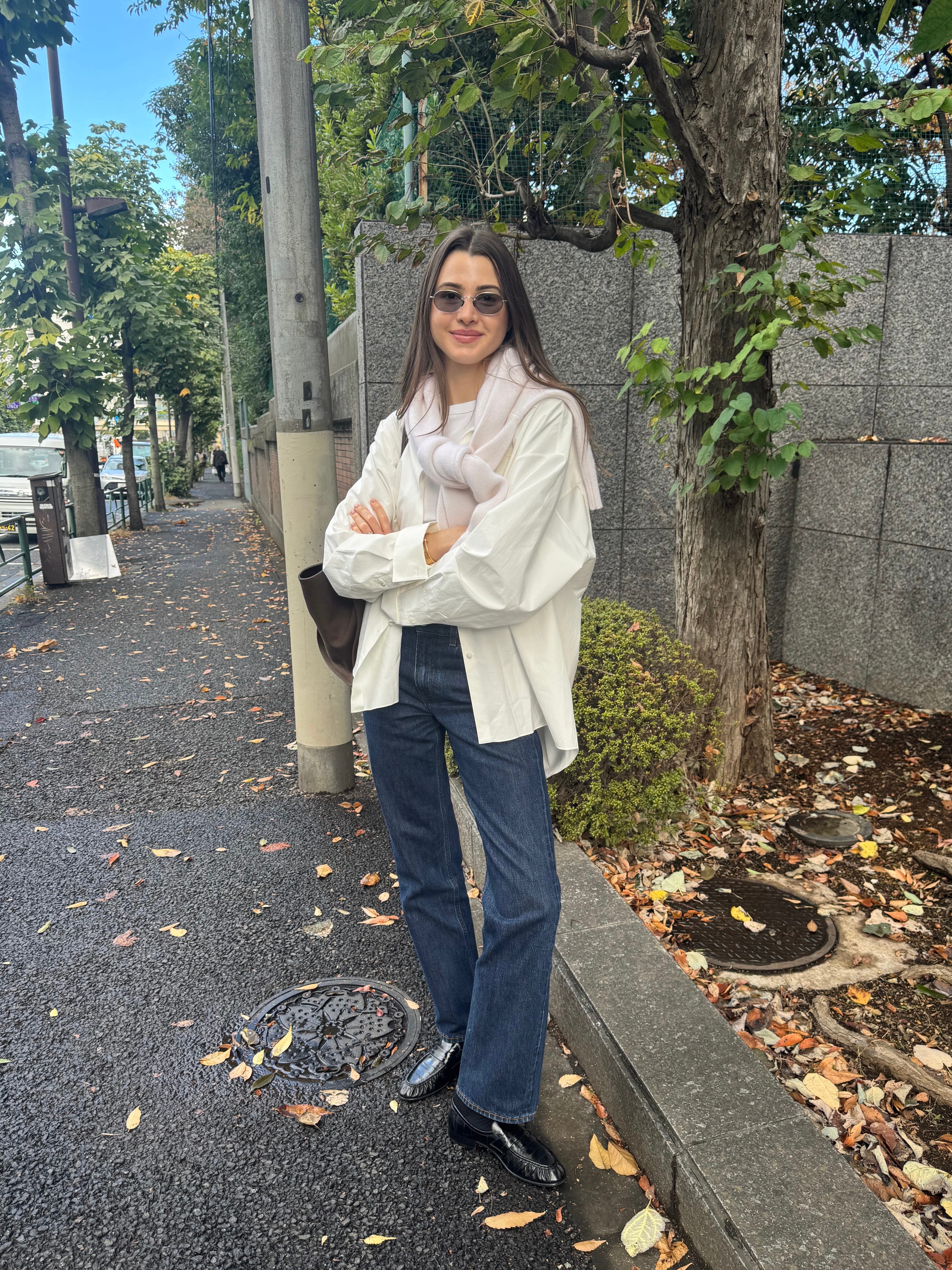 Our first night back in Tokyo! The outfit fatigue began to hit, so I was very happy to keep it simple. A pair of dressy denim and a tucked in button down is always my fallback. I love this shirt from TWP because it’s designed with a roll-tab cuff, so I’m never fussing with my sleeves!