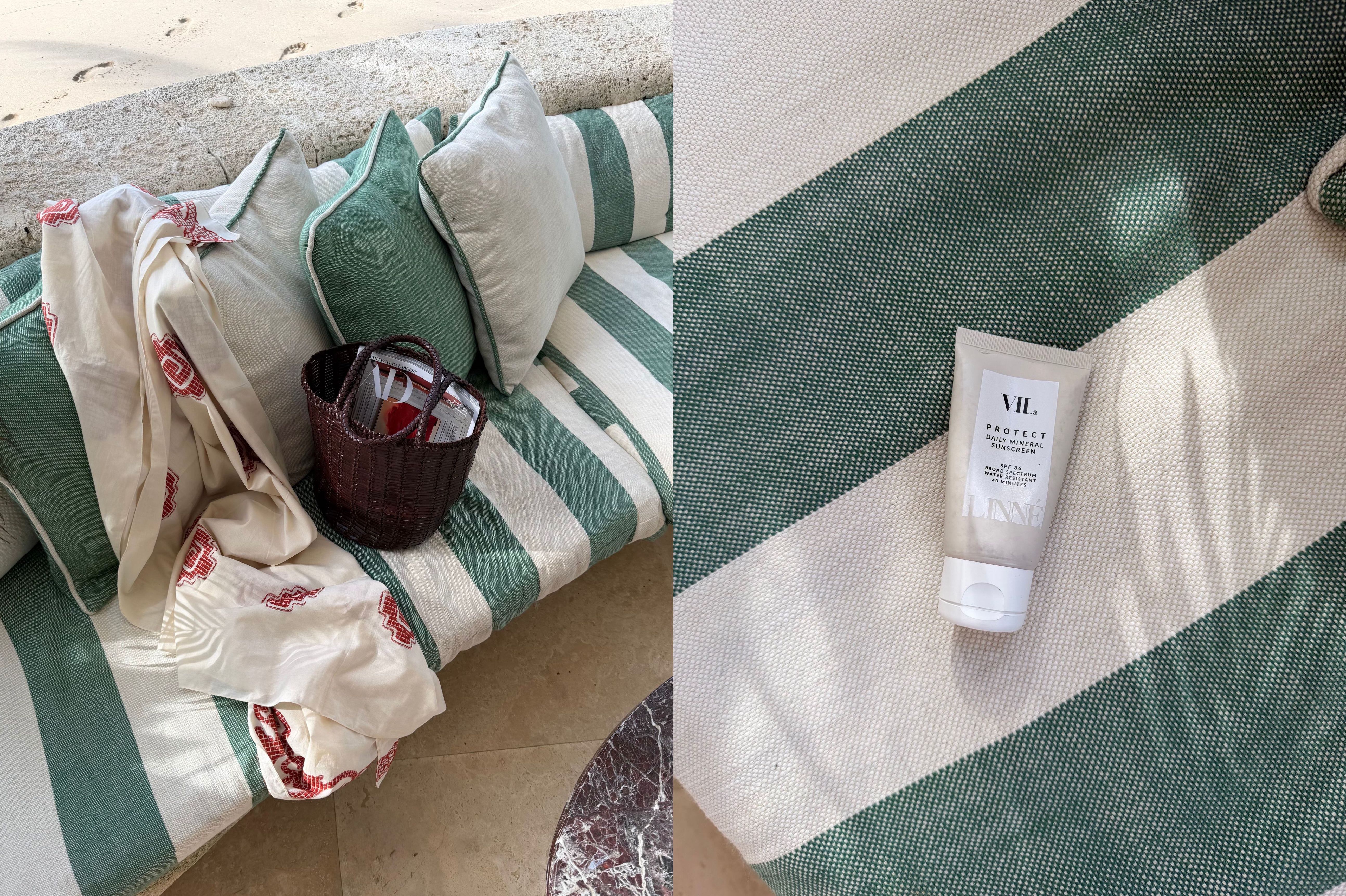 Skincare saviours are always the LINNÉ Protect SPF (the only water-resistant sunscreen that doesn’t break me out) Barrier Restore Serum, a good Body Oil, and a daily swim in the ocean.