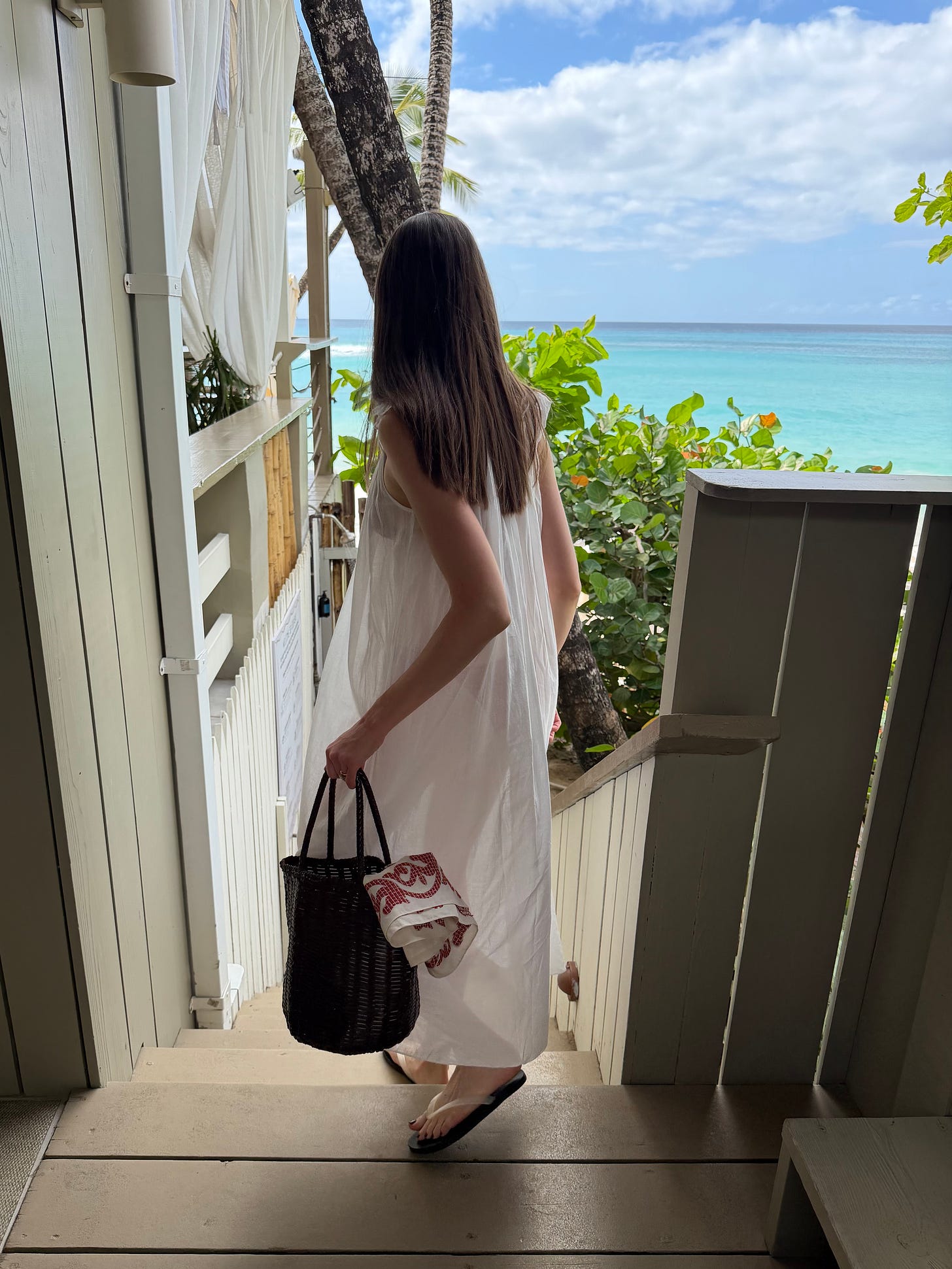 The Barbados wardrobe is a lot of swimwear paired with linen pants (Doen, Ref, RLT, or Donni), an oversized linen button down (usually one of Zach’s), or a breezy dress thrown over top (Doen or If Only If are my go-tos). My favourite swim is Eres, Matteau, and Hunza G.